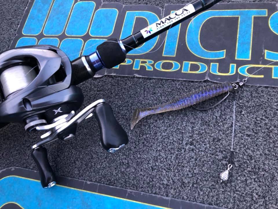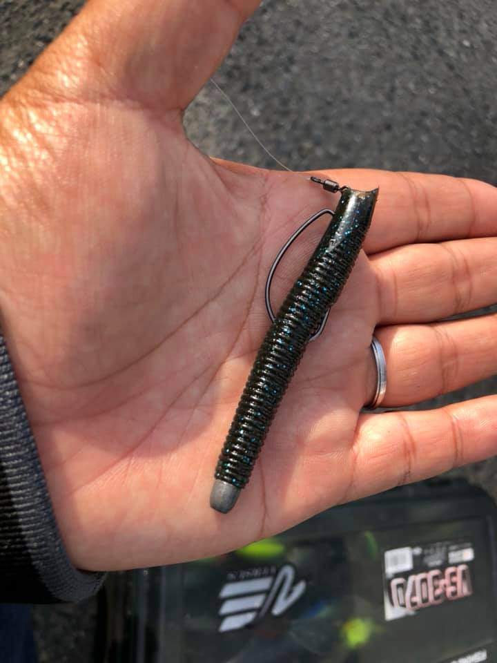 リグはスタッガーオリジナル4インチ、5インチの3.5gテキサスリグ。