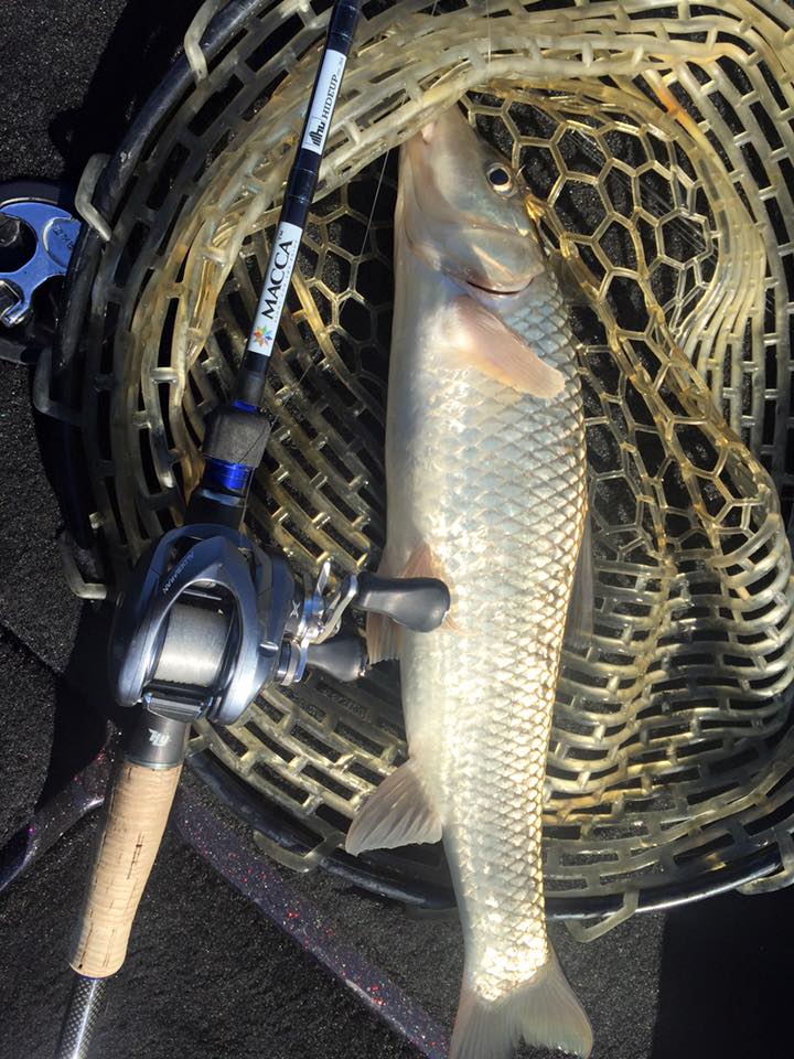 ラインを張ったり緩めたりしながら、ドラッギング気味にウィードの薄いボトムを引っ張っているとコツ!っときました。