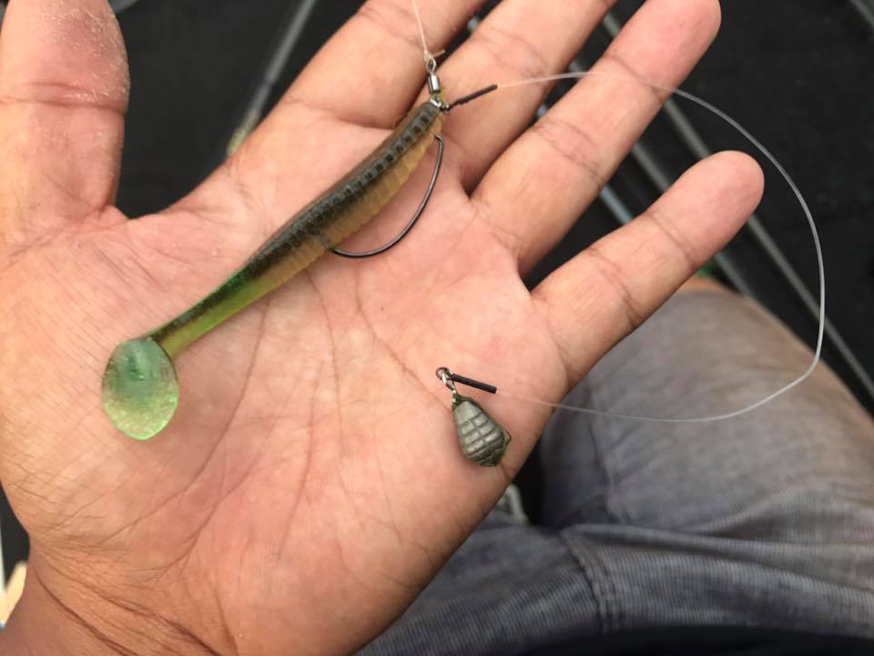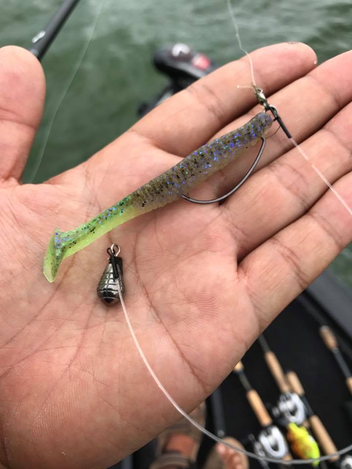 スライドフォールジグ5g&ワイドツインテール4にモーニングフィッシュ。