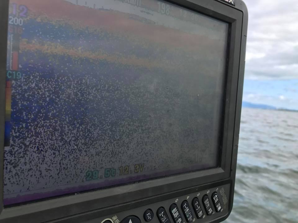 基準にした水深は2mで、できるだけカナダモの背が高いところ魚探を掛けて探し、流していきました。