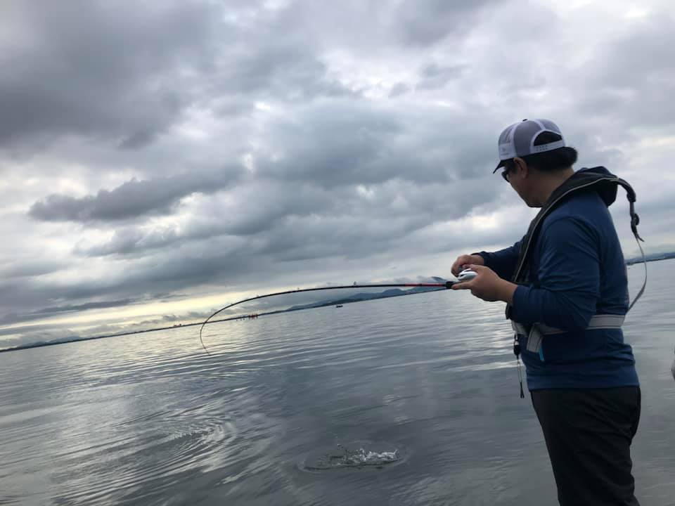 まだ釣り歴が浅く、ポッパーで釣ったことが無かったという小川さん、ポッパー初フィッシュです!!!