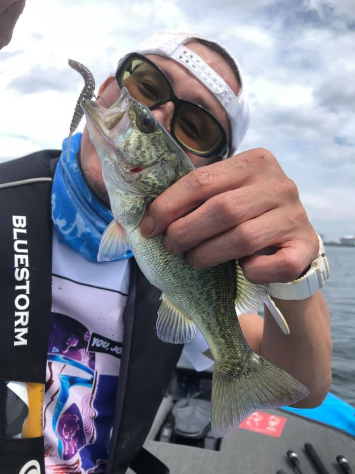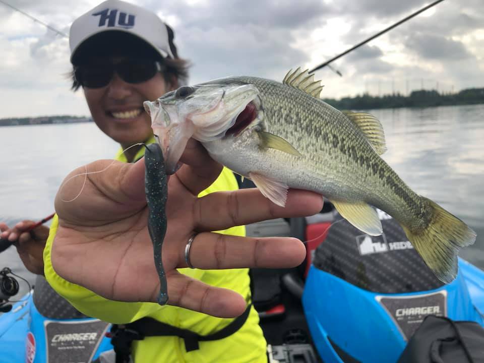 私がジーザーのプルプル(3.5インチクラスのピンテール系ワーム)をノーシンカーでクリア。