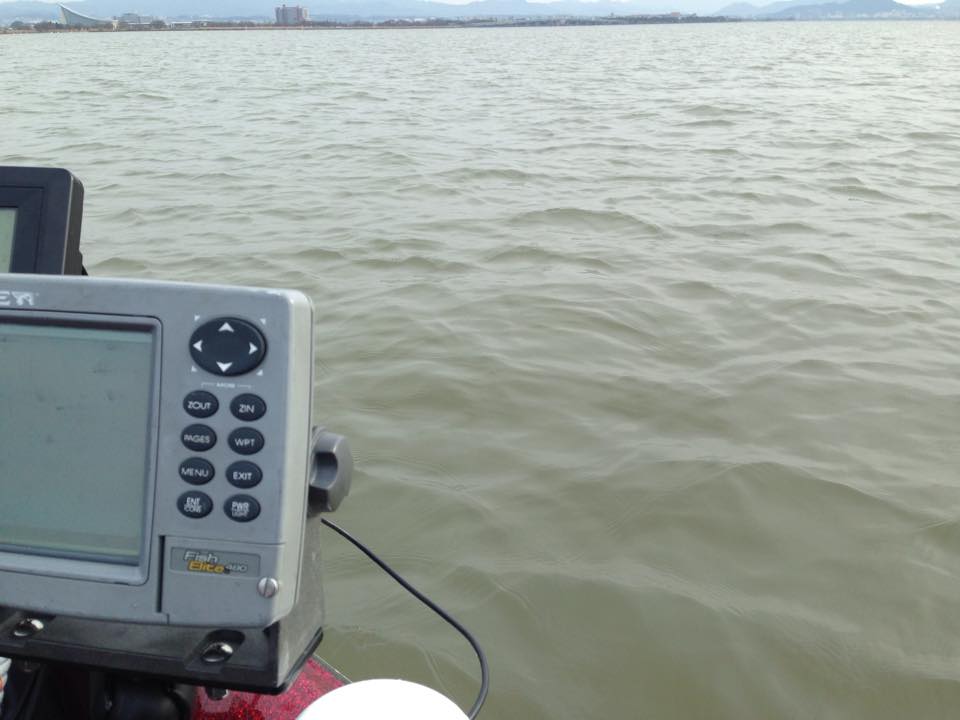 琵琶湖大橋から見た東岸はババ荒れどちゃ濁りでした。