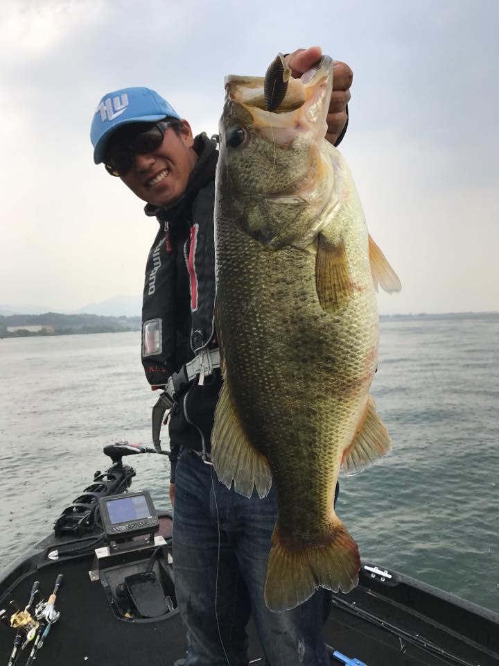 北村さんは、水の色やウィードの引っ掛かり具合からいろいろとルアーを変えていき、、、