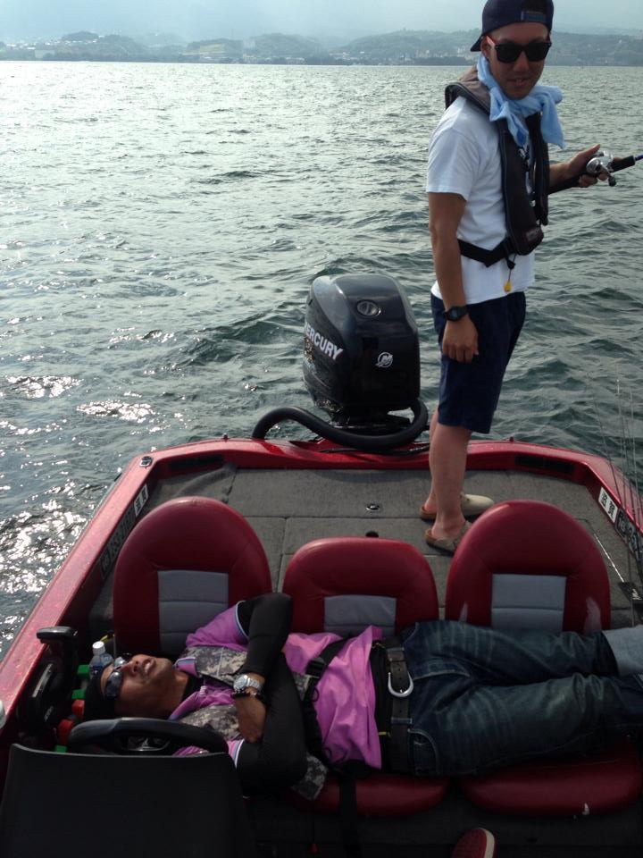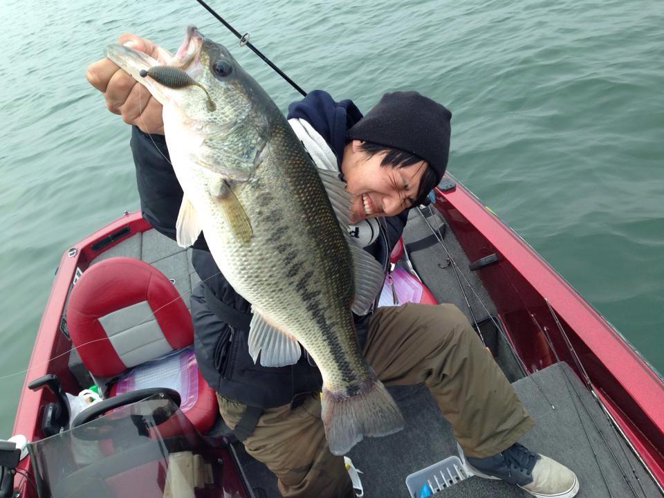 写真は会社の後輩。初めてのバスフィッシング、初めてのバスでした。