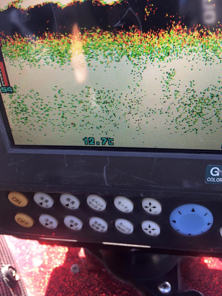 お昼寝している間に、エレキとエンジンで新しい深場を魚探掛け~。
