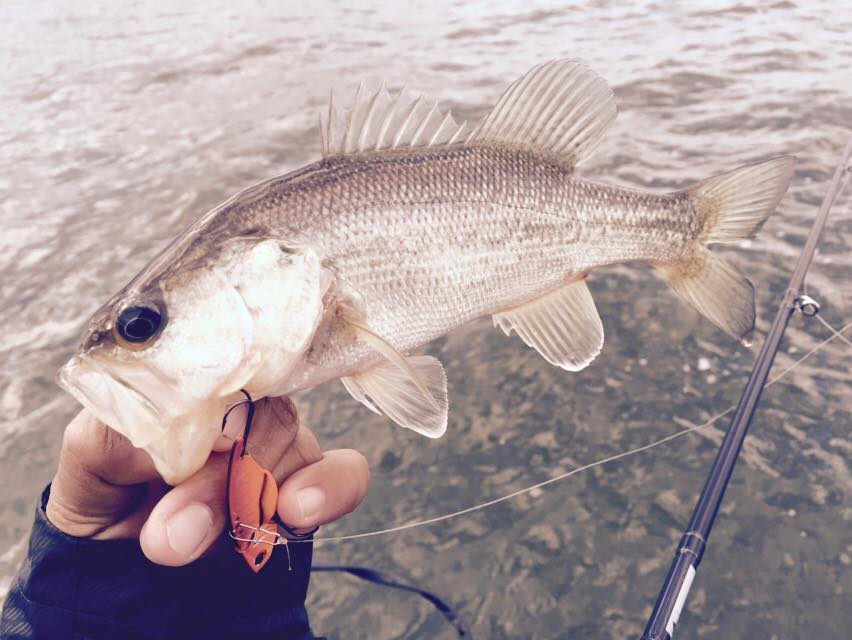 スピニングタックルで、ワッキーダウンショット(3.5g)を入れてみると1本釣れました。