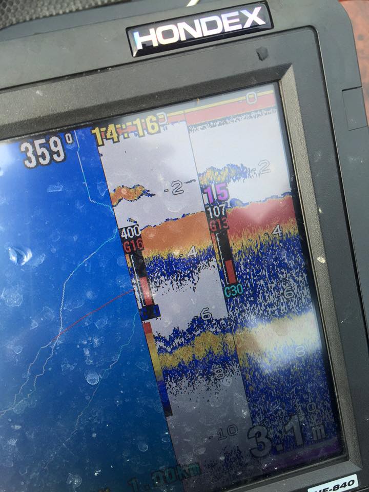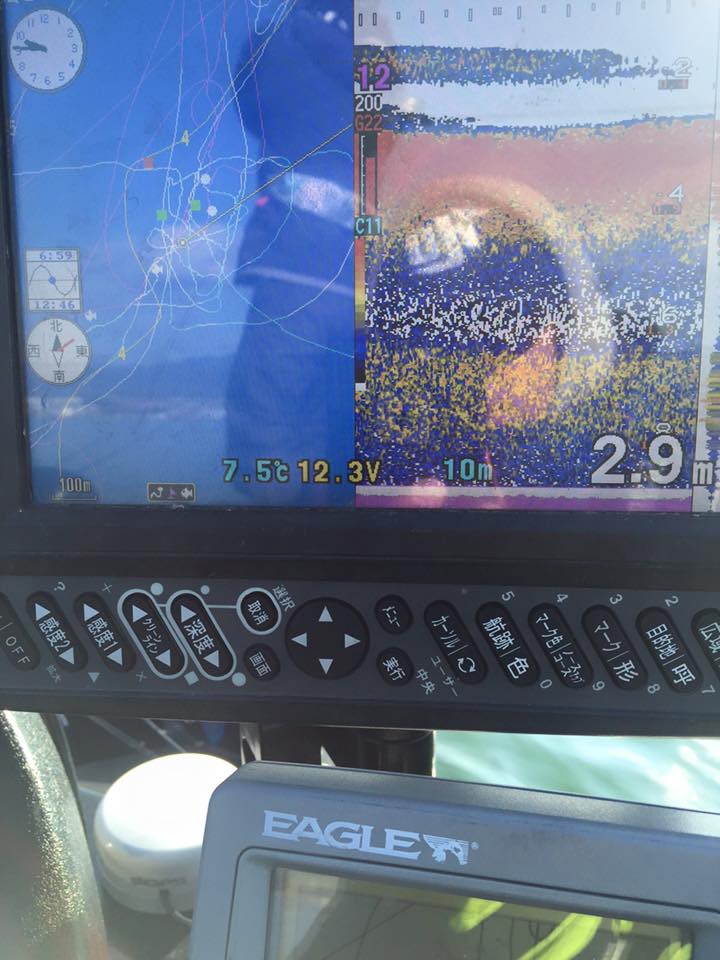 魚探にモヌケとか、変化が映る。 。。。。でモヌケが終わったらマーカーブイをぽいっと。
