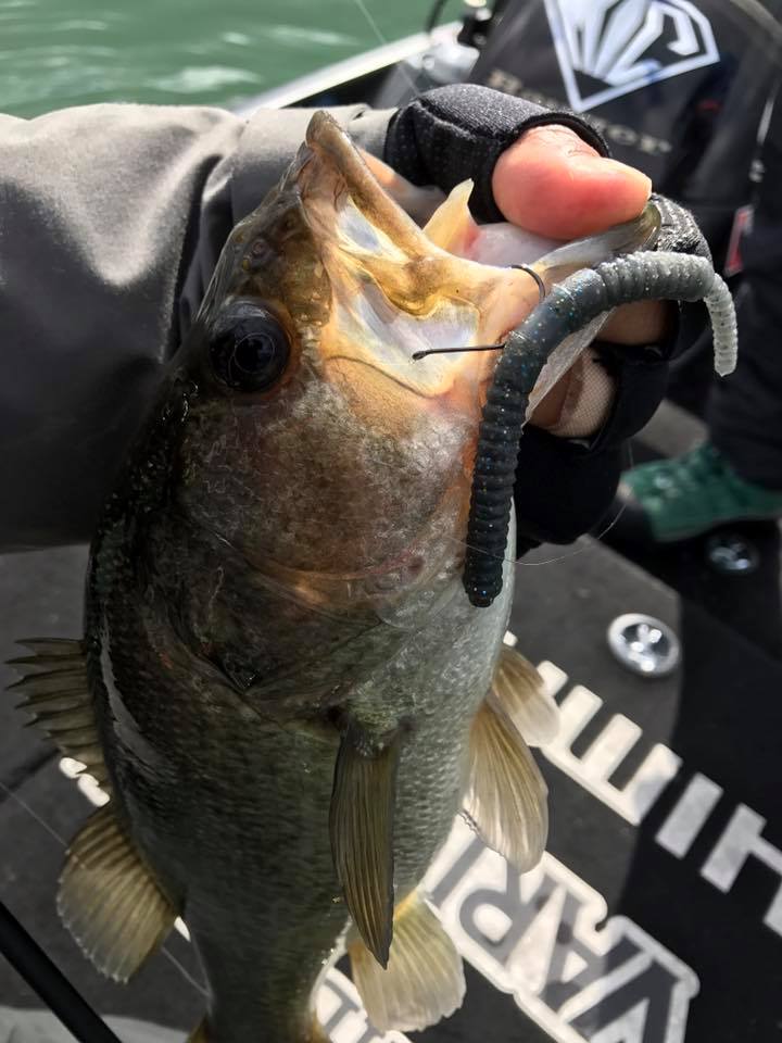 ​休憩中に水谷さんが放っていたカットテールノーシンカーワッキーにて。