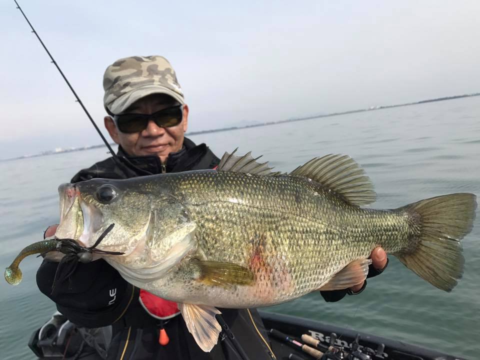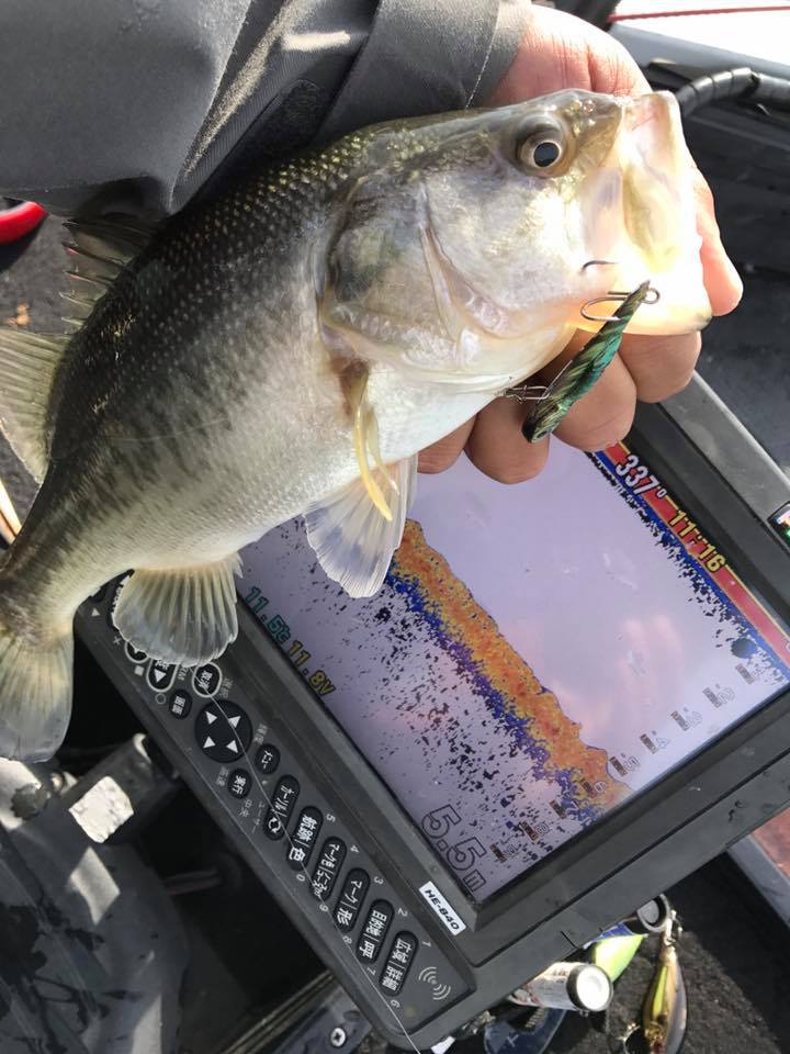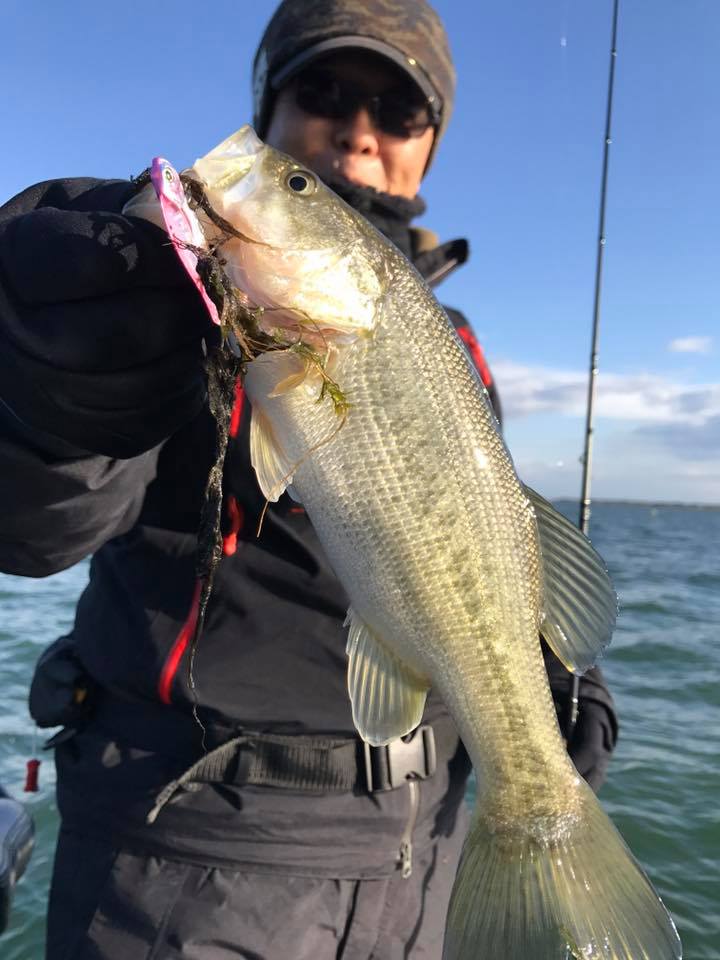 ​続いてチャンネルライン沿いウィードでのメタルバイブ & 浚渫でのヘビダン良く釣っていエボム井ノ口さん艇。