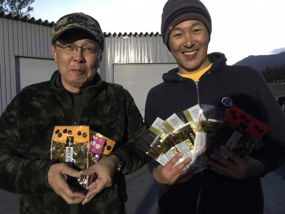 参加賞の高菜を配り。。。