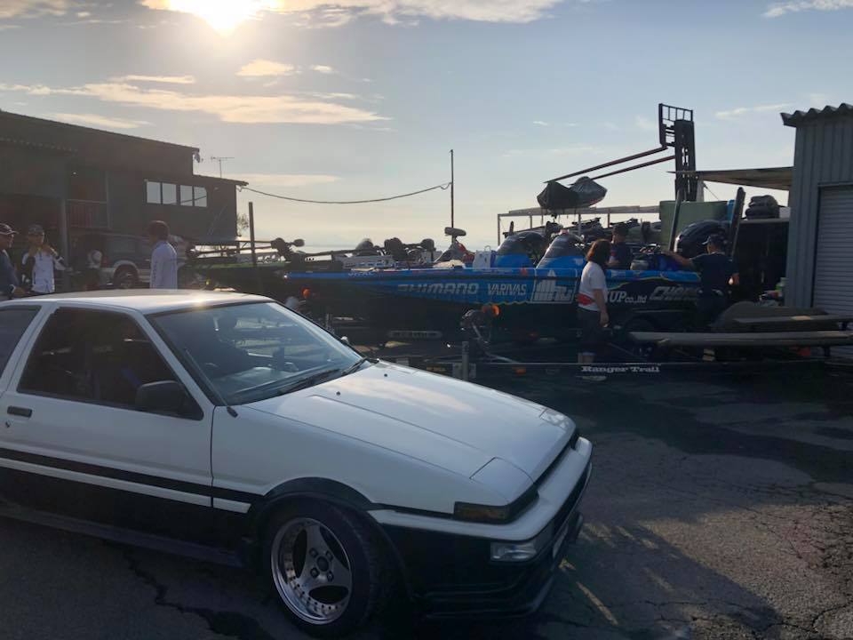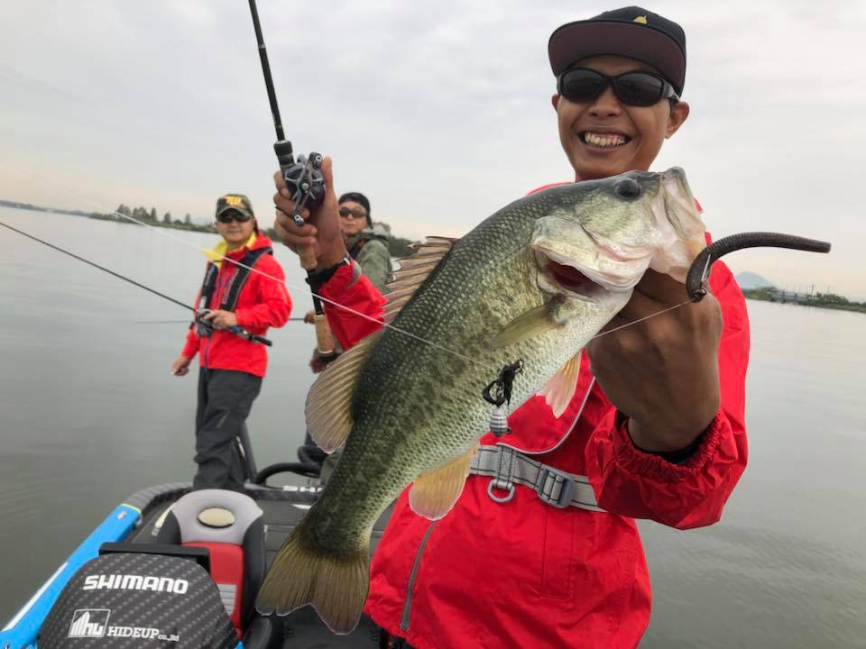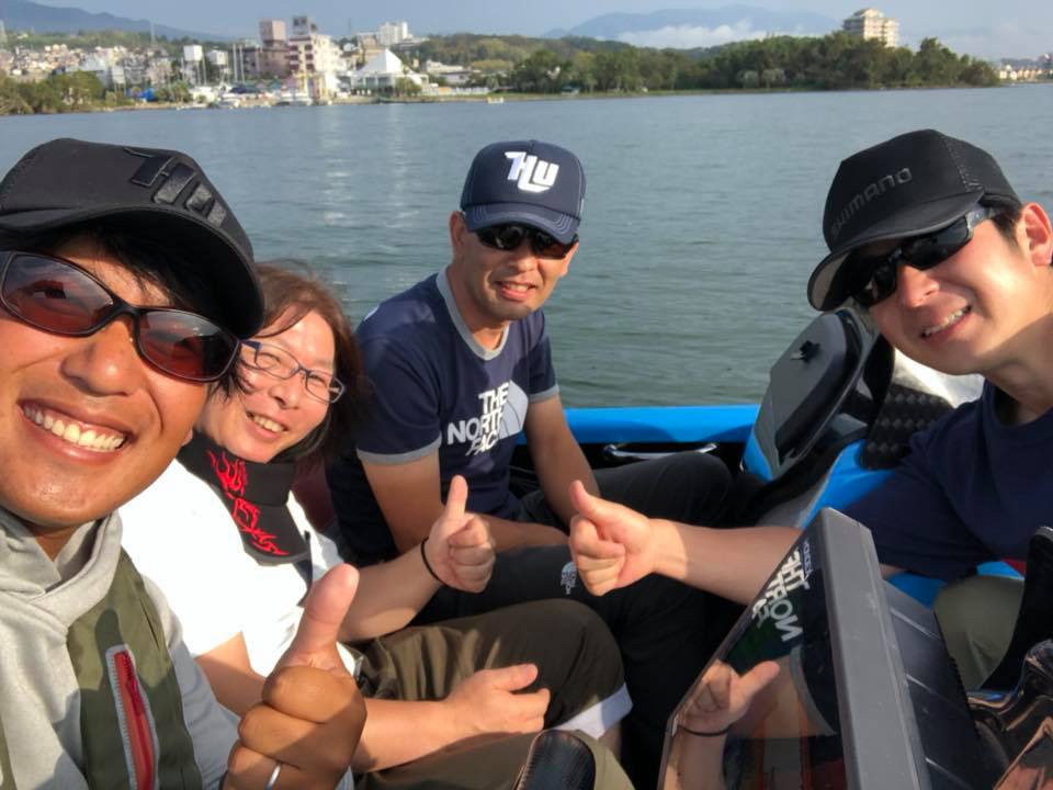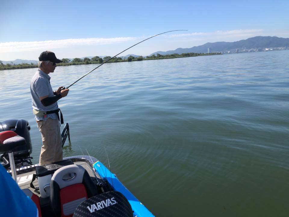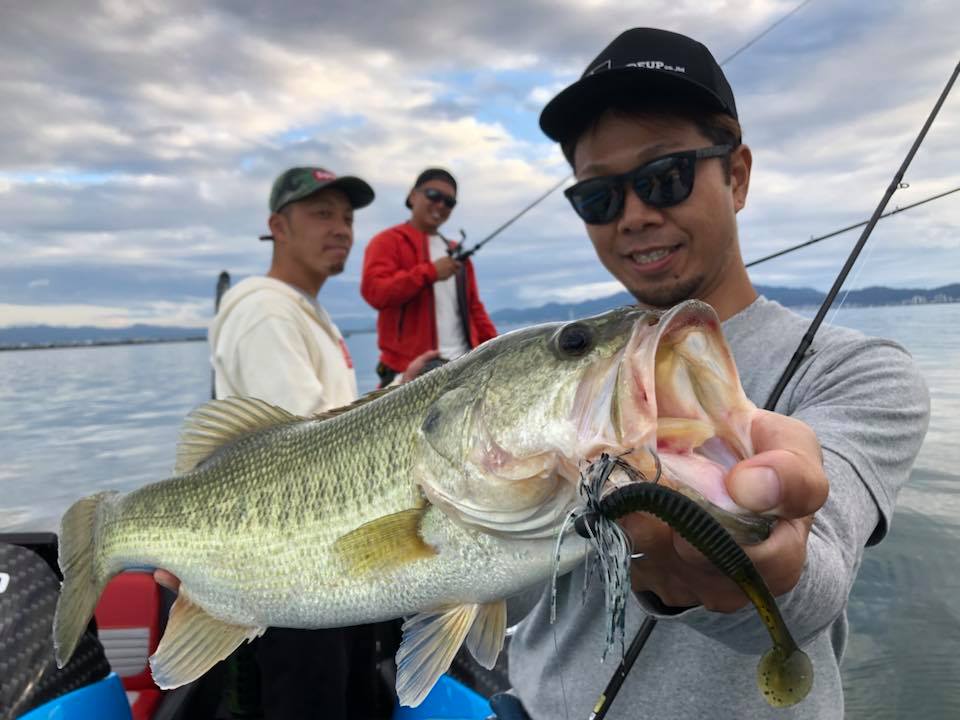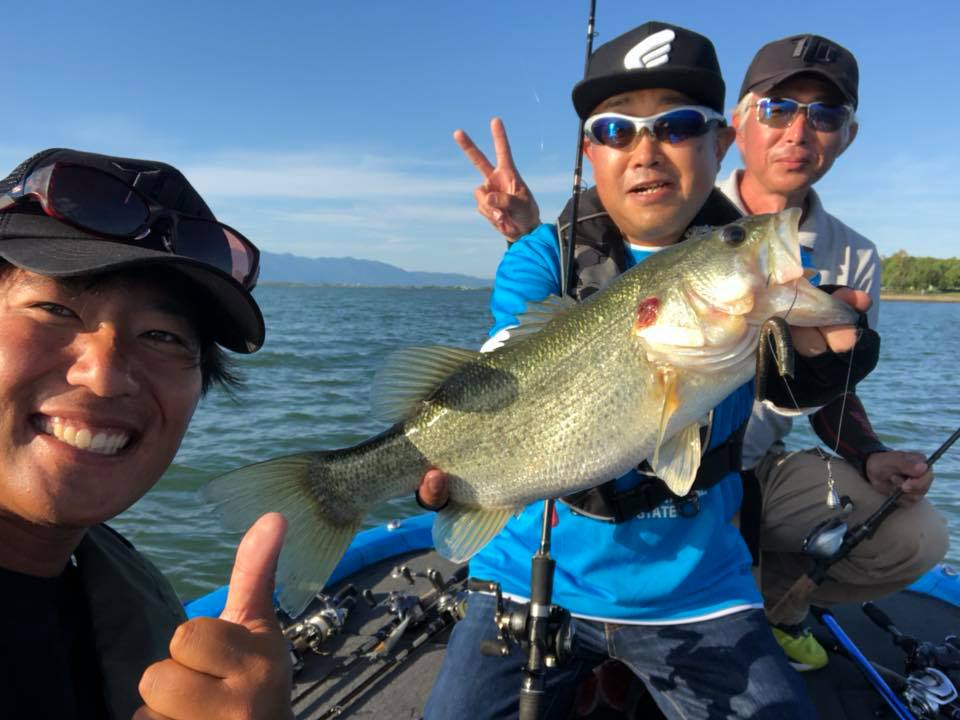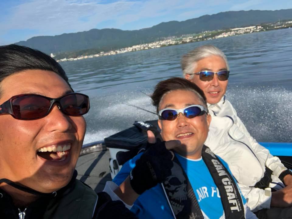 モーリーさんに、かめや大垣店の西脇さん、タックルベリー岐阜店の高木さんが混ざり秋の琵琶湖ゲームをスタート!