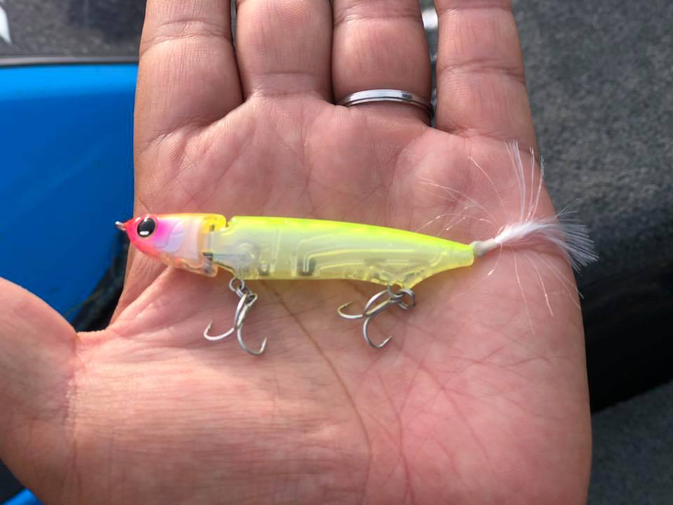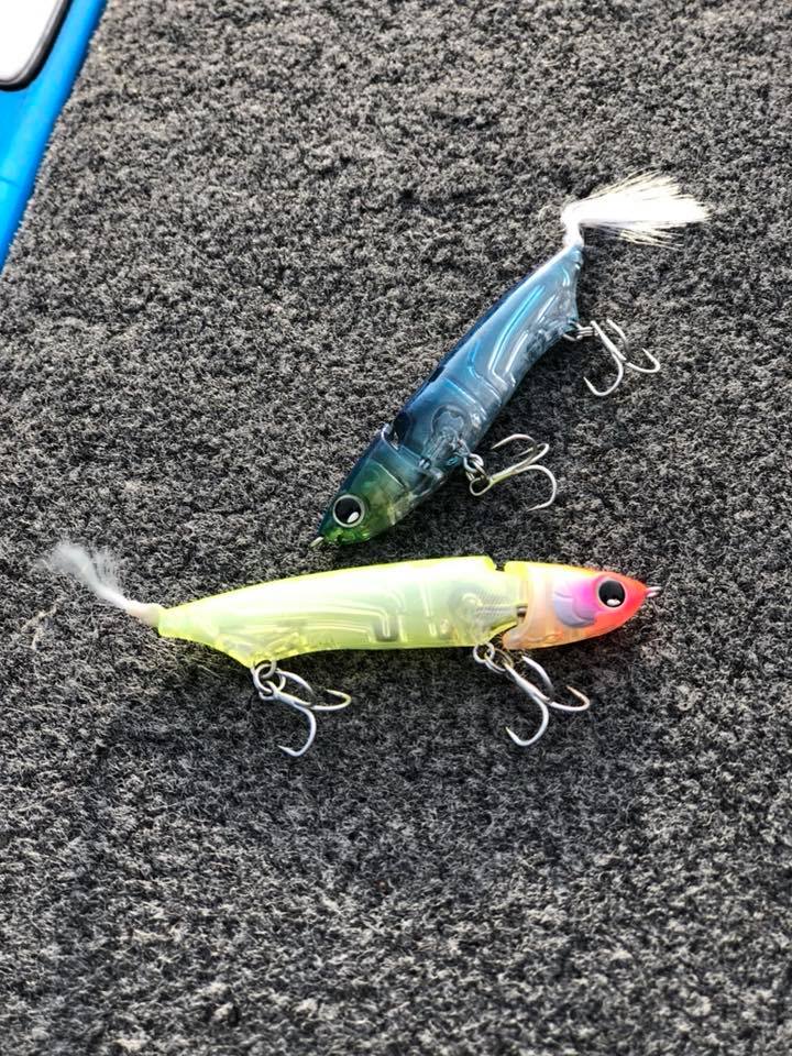 今回は風もあったので、フロントフック部分にクイックチェンジャーの0.9gをつけて巻いていました。