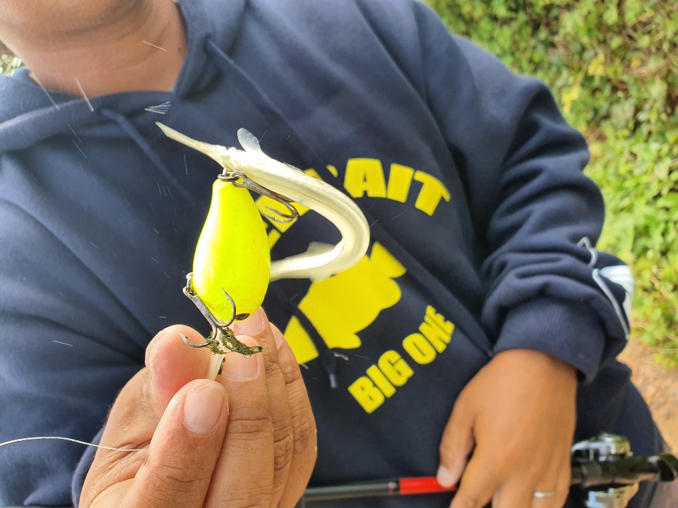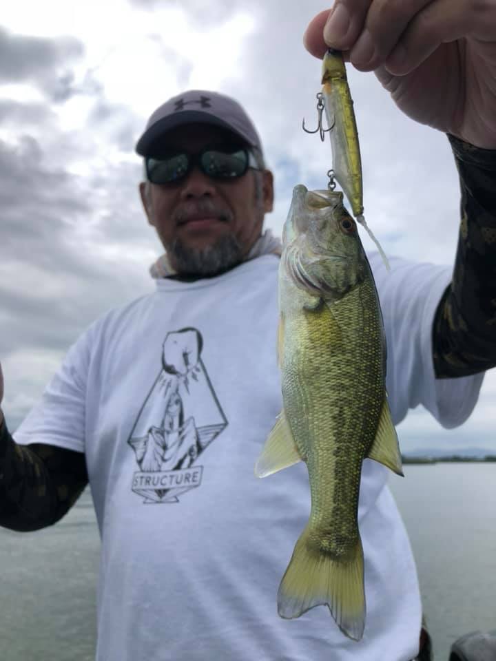 朝はクランク(HU300)でカワイイサイズを釣りながらカバーではジグ撃ち。