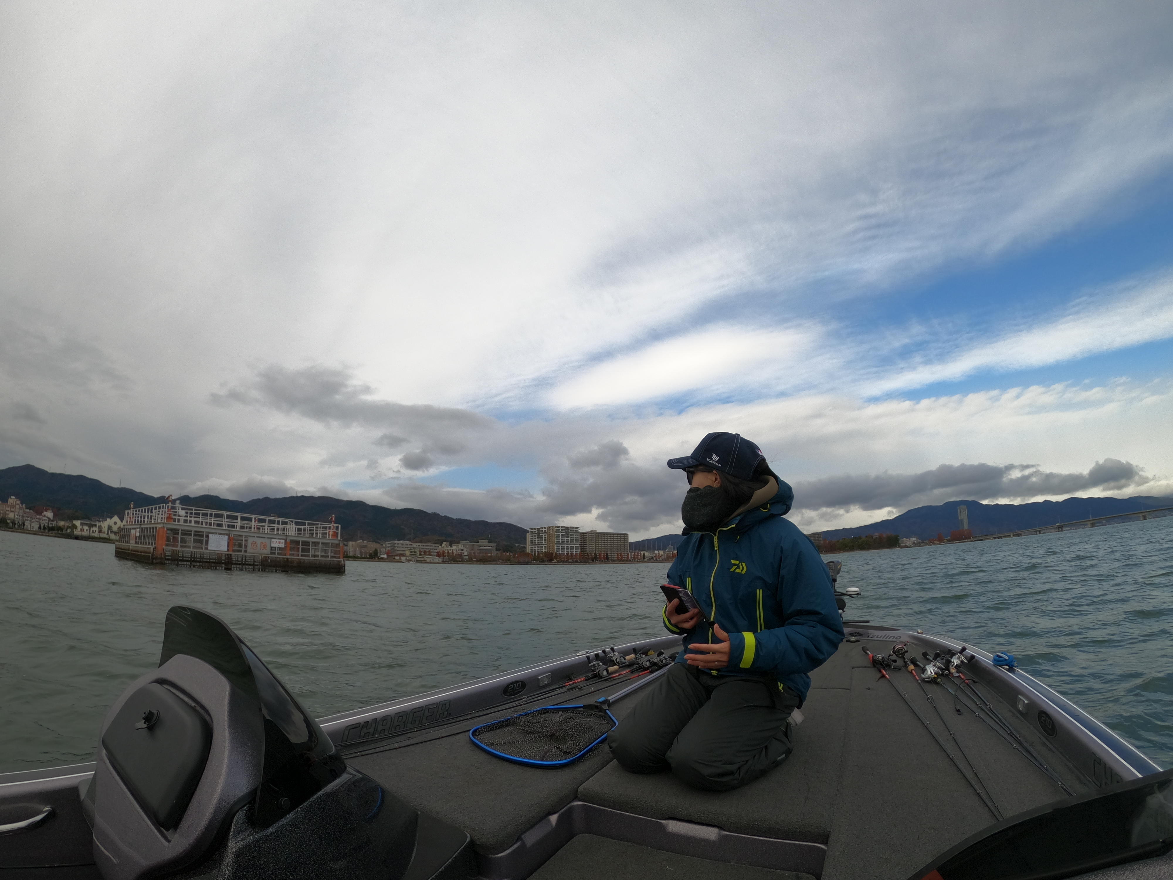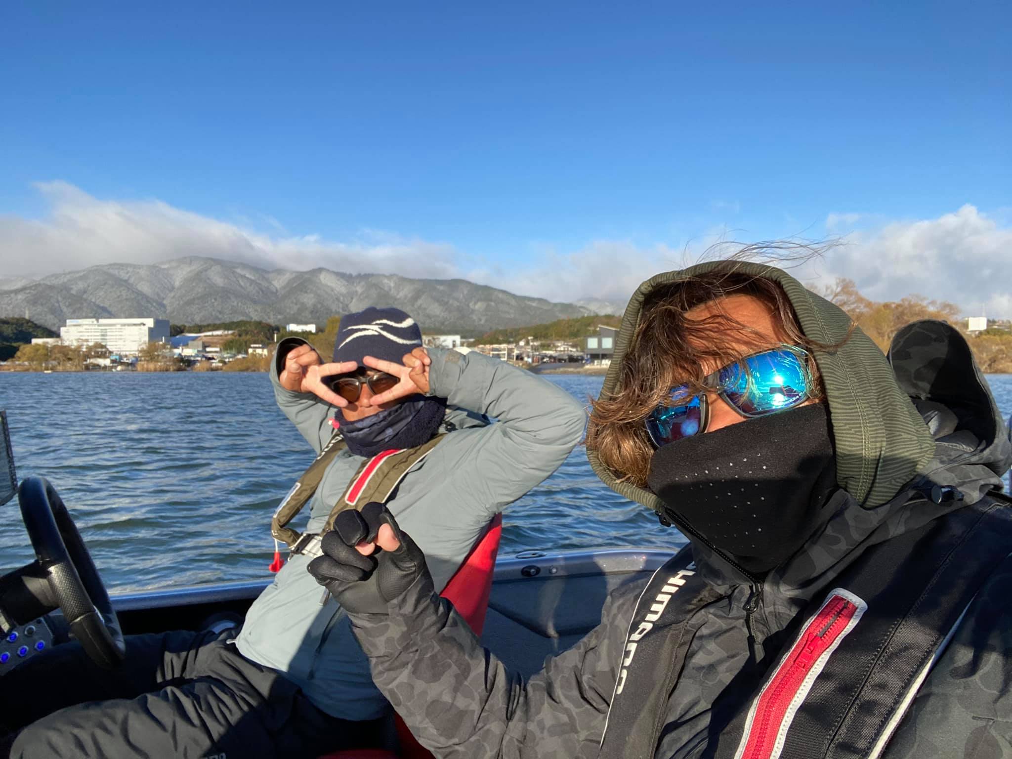 弱くなったとはいえ、まだまだ西風の吹き抜ける極寒の湖上です。