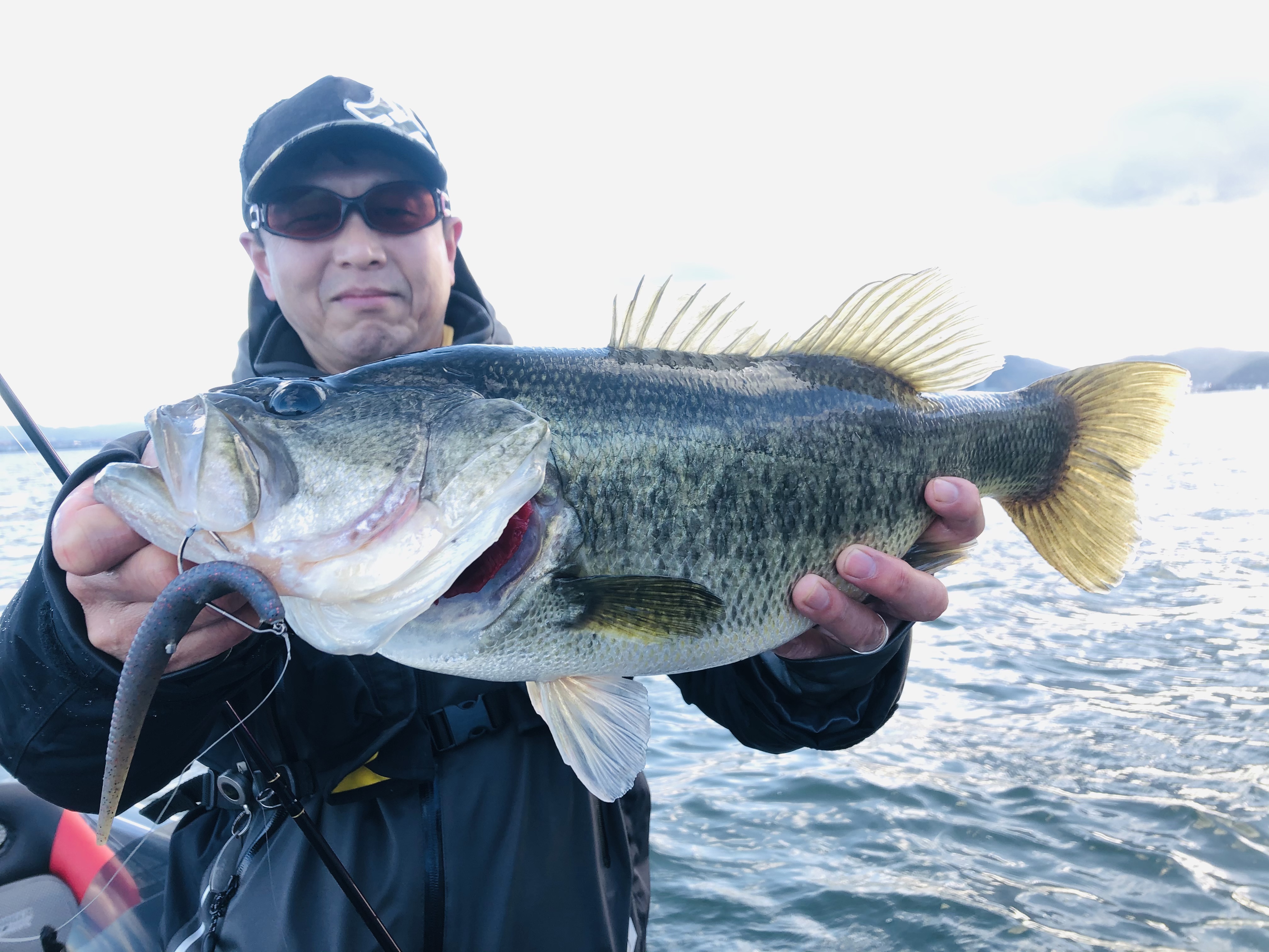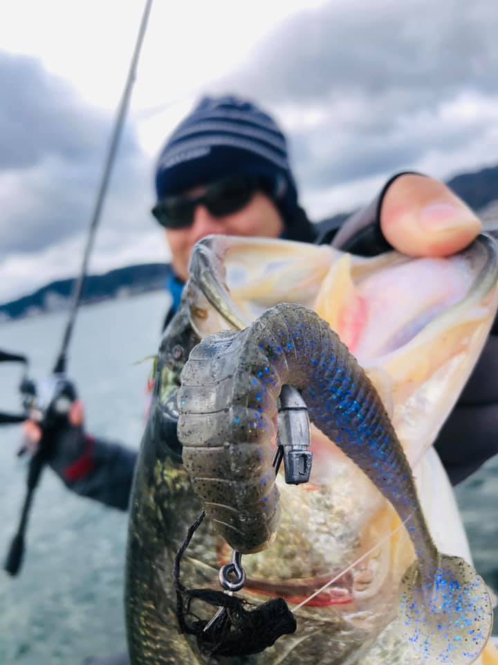 スタッガーオリジナル4インチ&おもし!2.7gのウェイテッドリグを2秒おきにトン、トン、トンのcramsp(痙攣)アクション!!!!