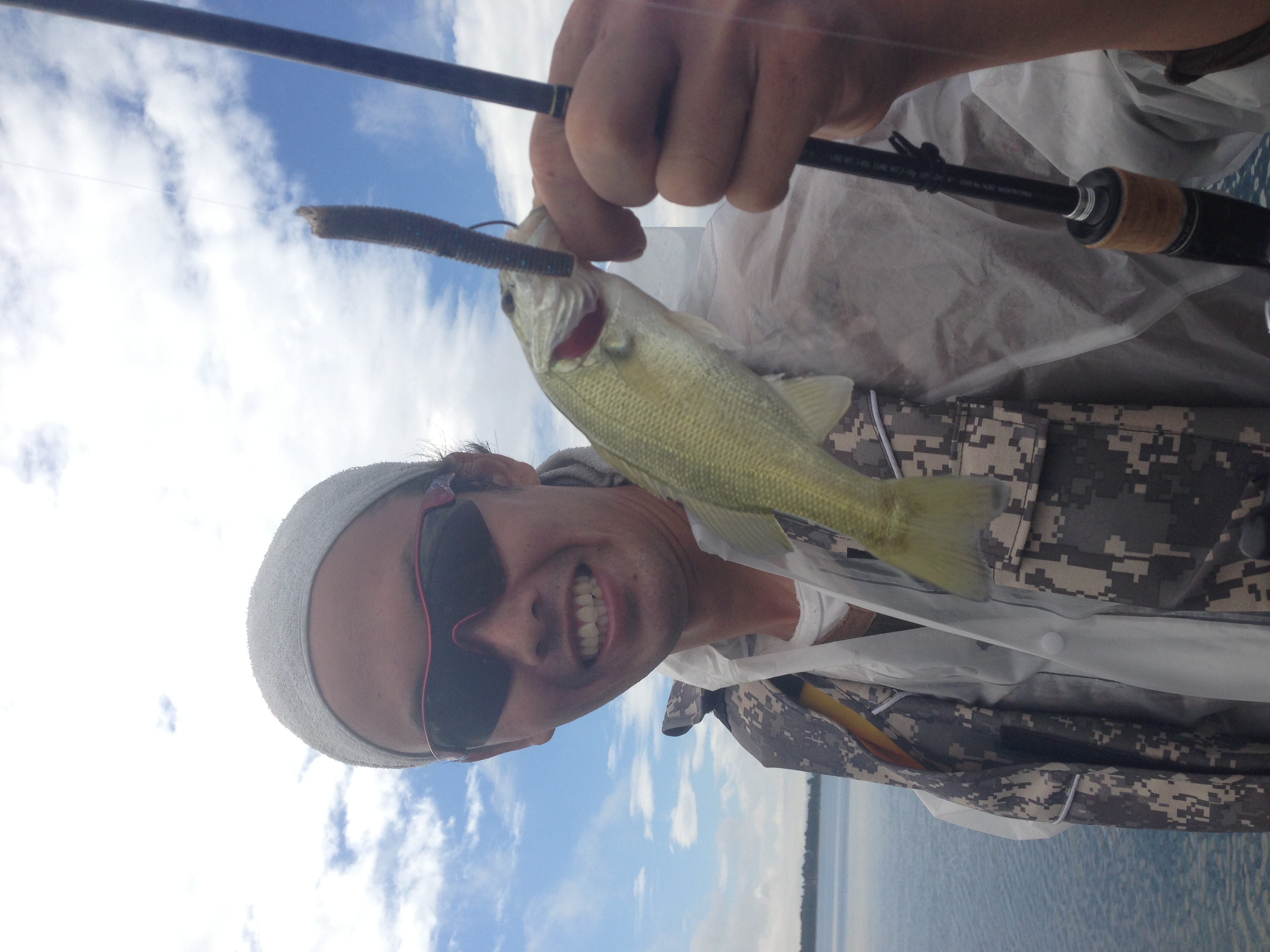 今日は同期の木原君を道連れ。彼、よくこのブログに出てきますが、僕の船でしかバス釣りしたことがありません笑