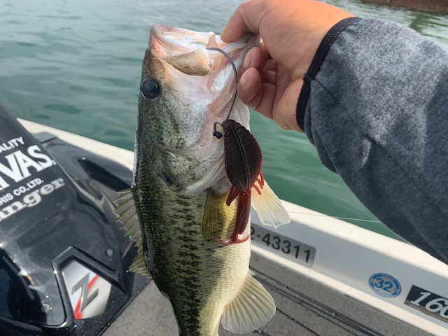 午前中に気づいていたんですが、この日はやたらシルエットのデカイワームに反応良好