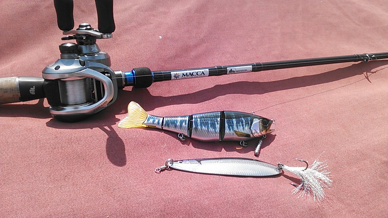 ロッドはMACCA HUMC-71H ライン16lb ちなみにビッグベイトにはクイックチェンジャー7gを装着して使用しておりました