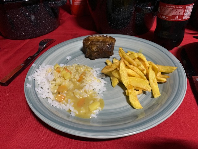 日も暮れロッジに戻り夕食へ