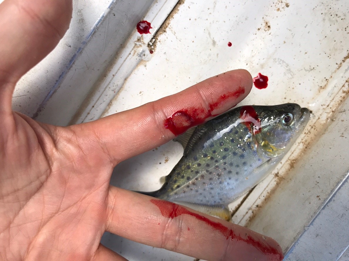 その〝タイっぽいナマズ〟もバラバラにして餌にします