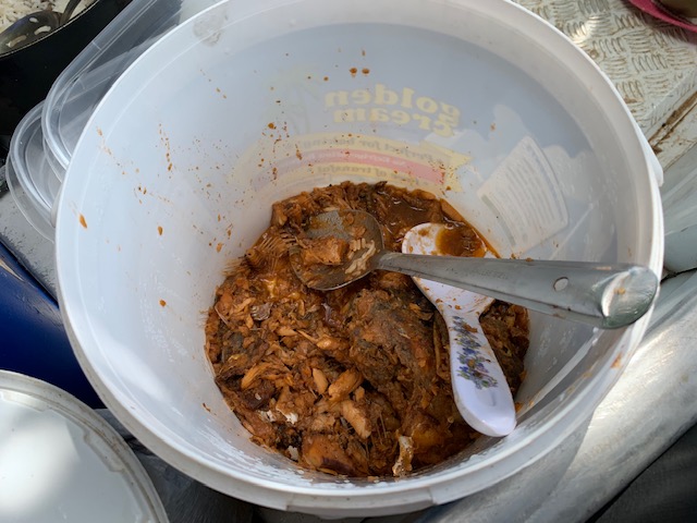 昼間に釣った魚をバラバラにして