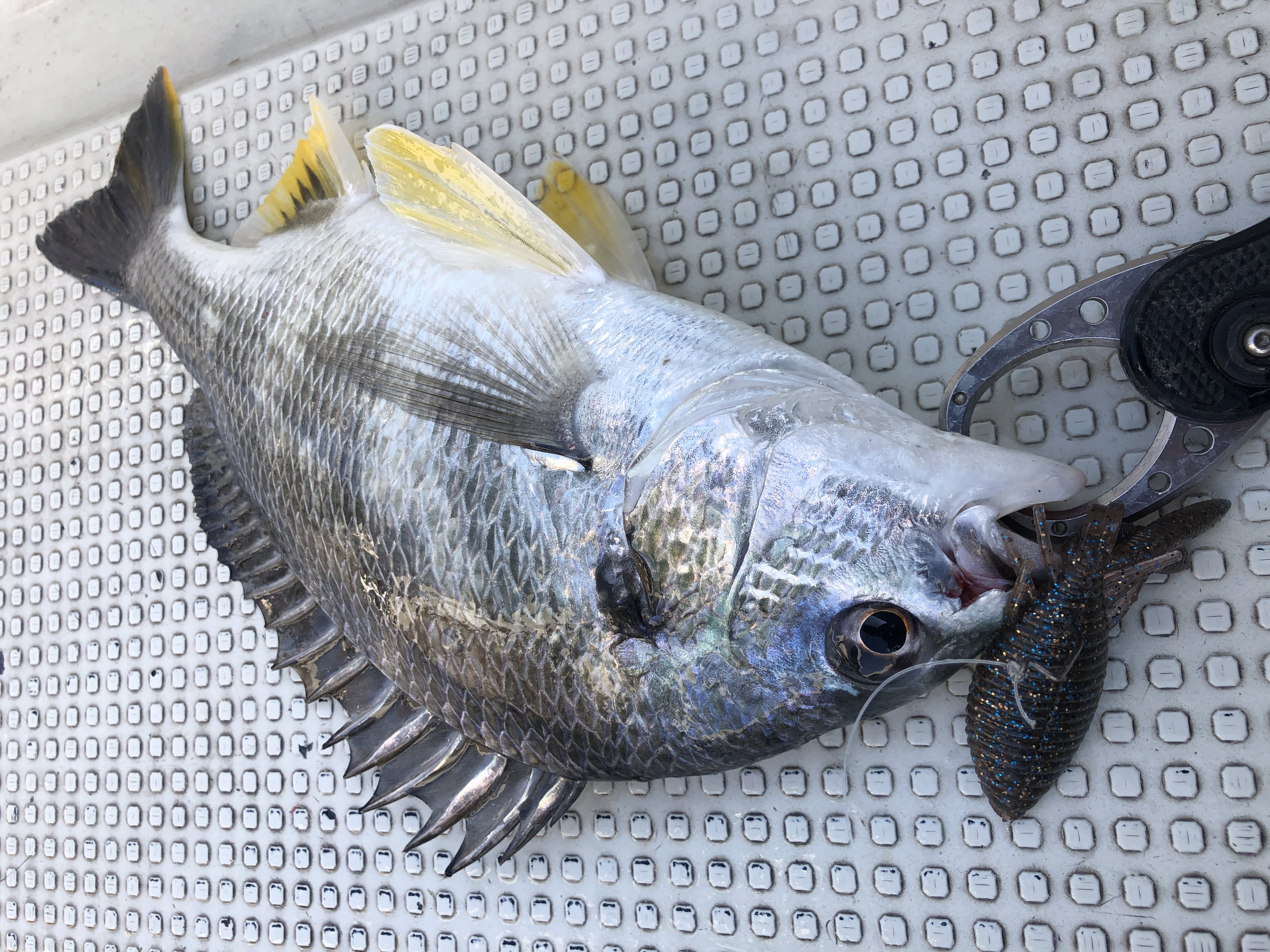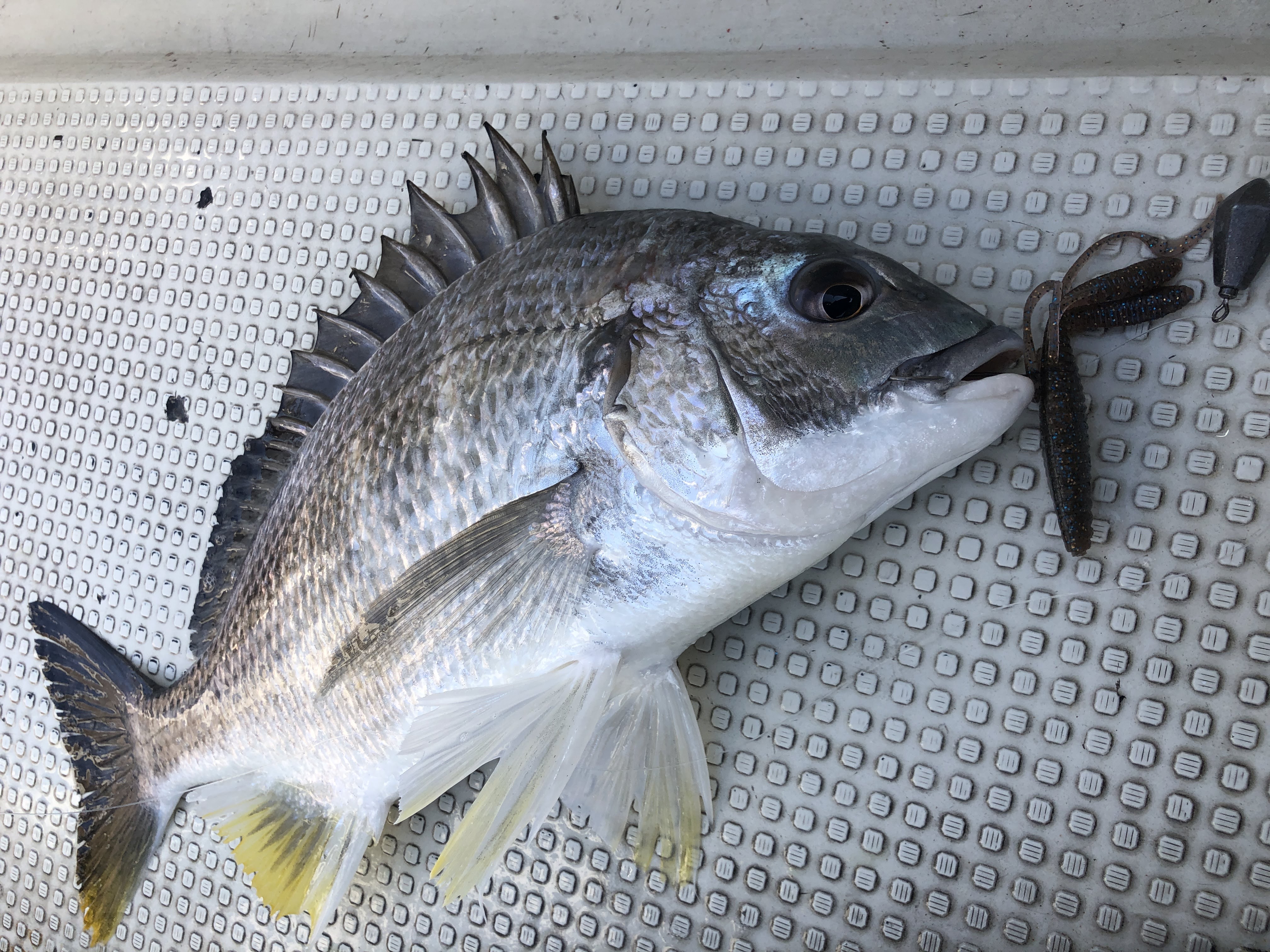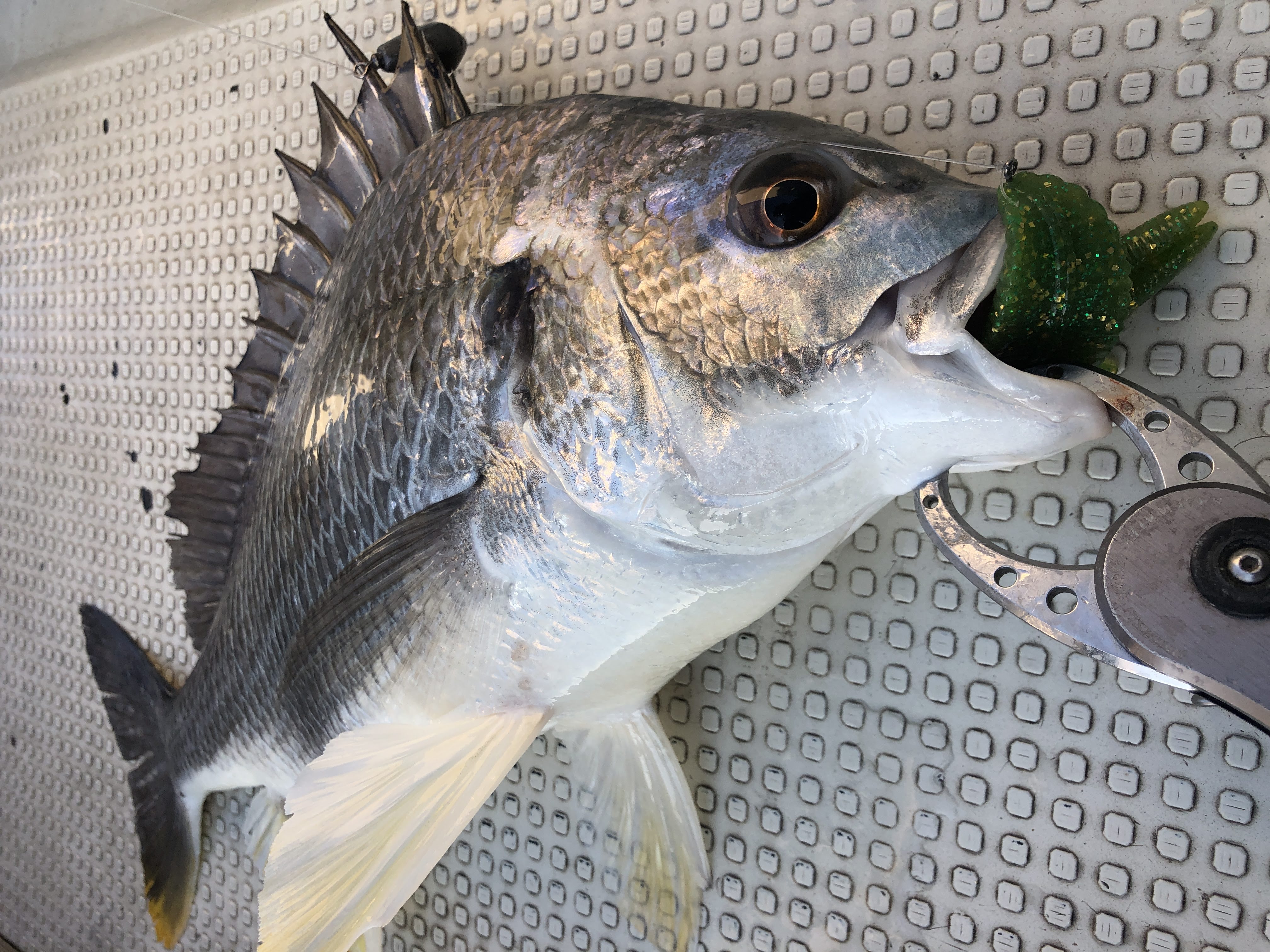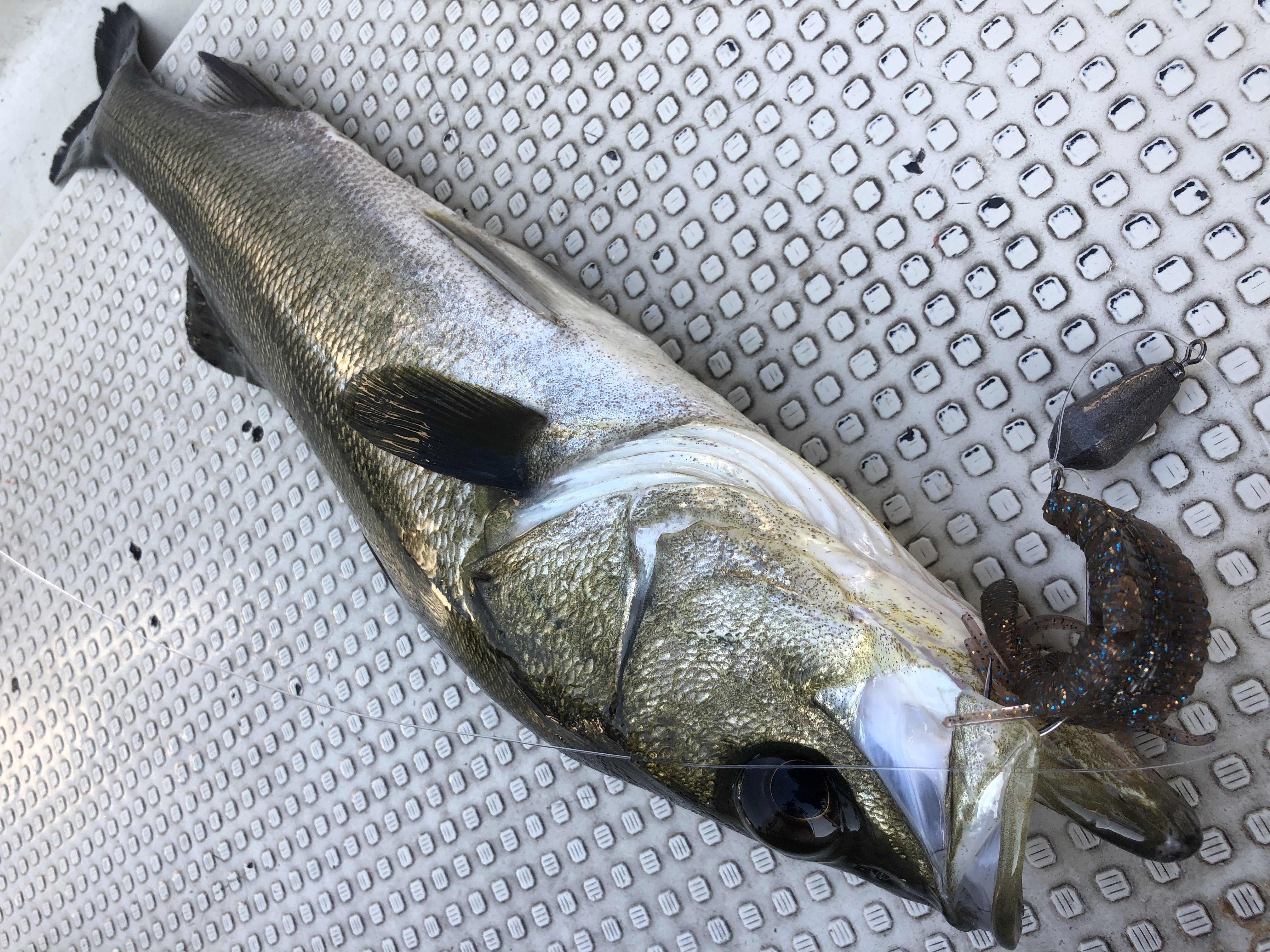 この日は、ほんとに少しだけチョンっとルアーを上げてから、ゆーっくり送り込んで着底させるとバイトが出ました。普通にリフト&フォールさせるのではフォールが早かったんでしょうね。ゆっくりじゃないとアタリが出ませんでした。