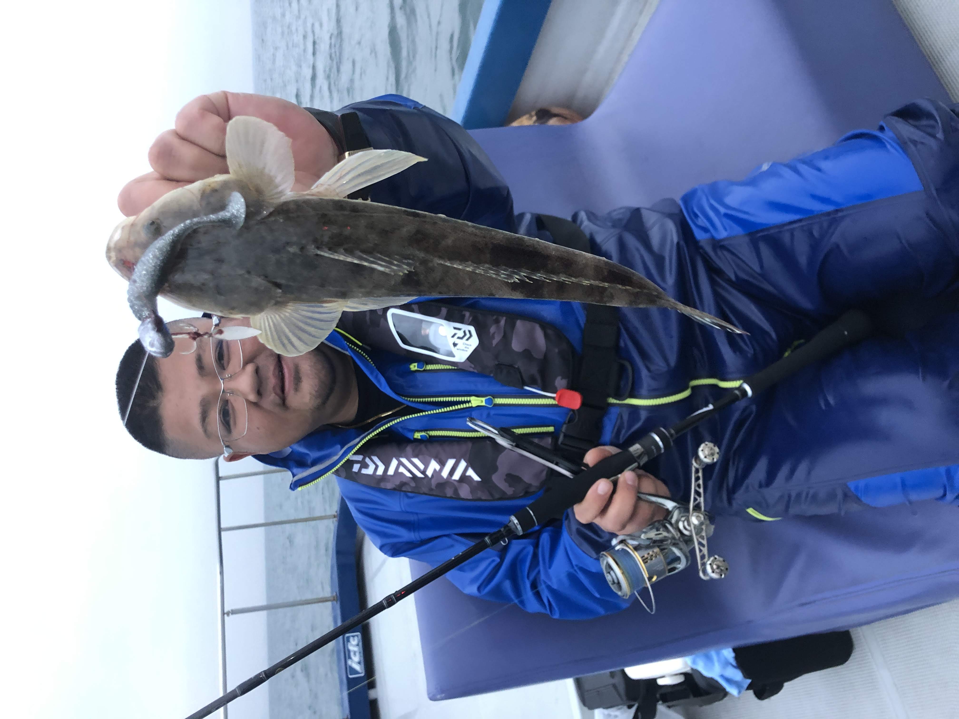 船の流れる方向と、アクションのさせ方が噛み合って連発したという訳なんですが、マゴチ釣りにおいて船の流れる向きを理解することは非常に重要なファクターの一つです。海域の違いでも流し方の特徴は出ます。これについては詳しく今度改めて説明しますね。