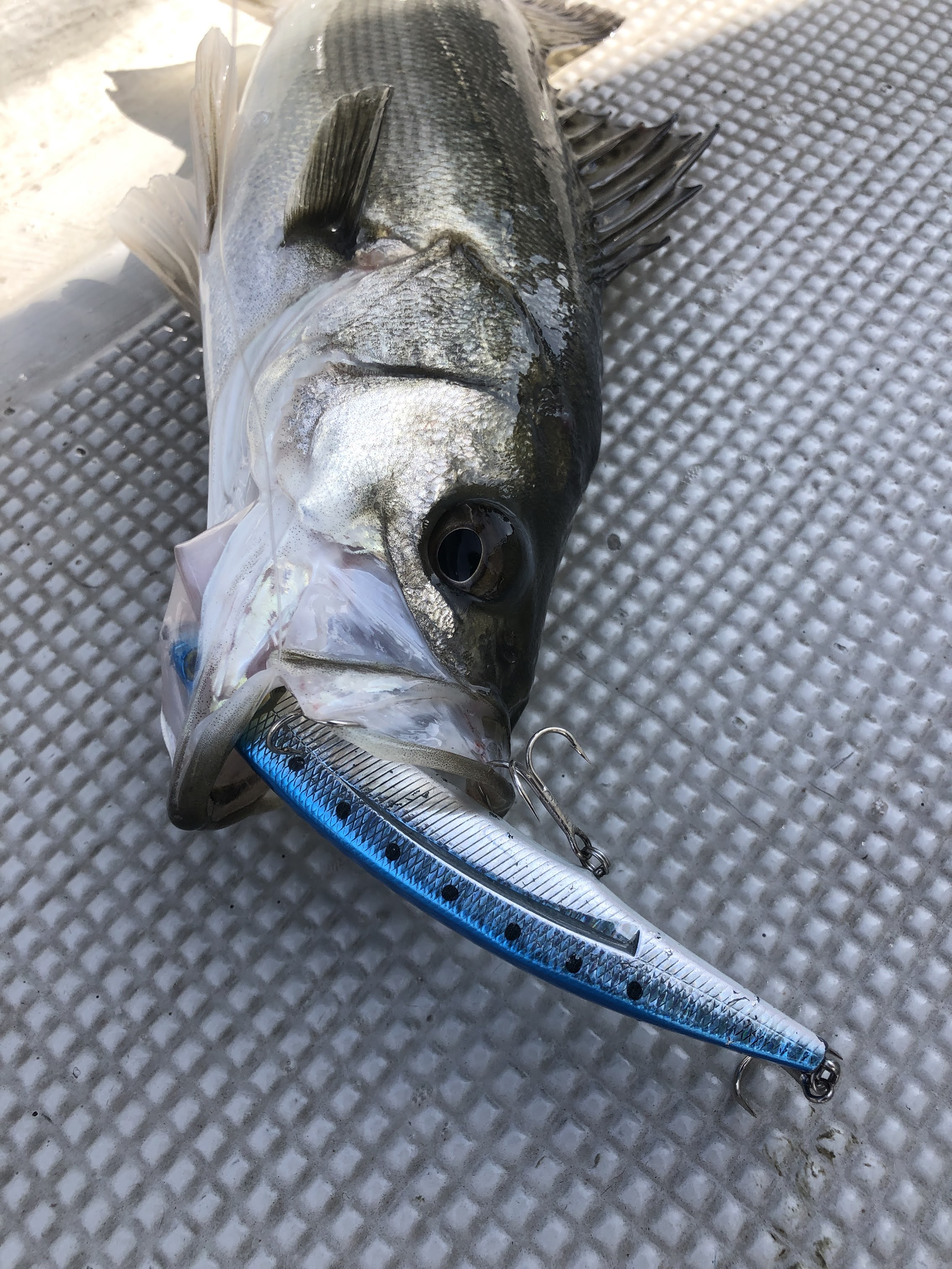 この日は予報外れて超爆風!!という事で仕方なく風裏ポイントから。風裏ポイントでは坪内さんが一人ワイド3.3 ギルカラーで連発!!ちなみに坪内さんは、この日ワイド3.3以外投げていません。で、もちろんこの日の竿頭!すごいです!!僕よりもワイドホグ使いですね(^^;)
