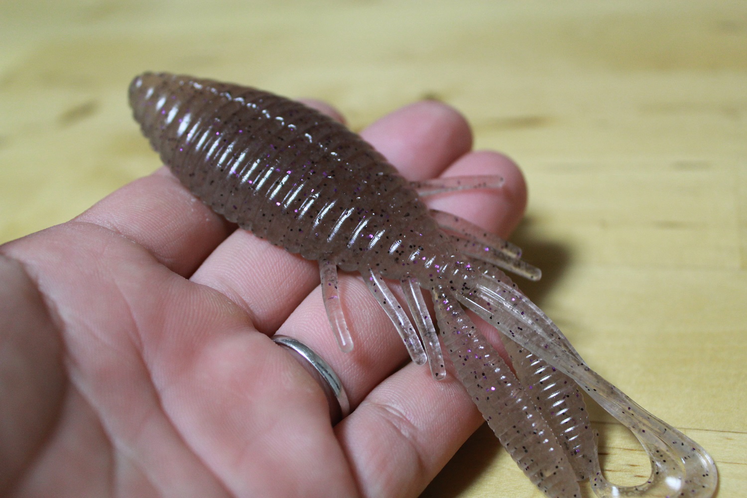 新たにワイドホグ3.3inと4inに加わる事となった武田カラーの「エビダッピ」非常にユニークなお名前ですが「脱皮したてのエビ」をイメージしたカラーリングで、透明感のあるシナモンベースにパープルラメと黒ラメの入ったボリューミーで水押しの強いワイドホグを「ヘルシー」に見せるカラーになります!